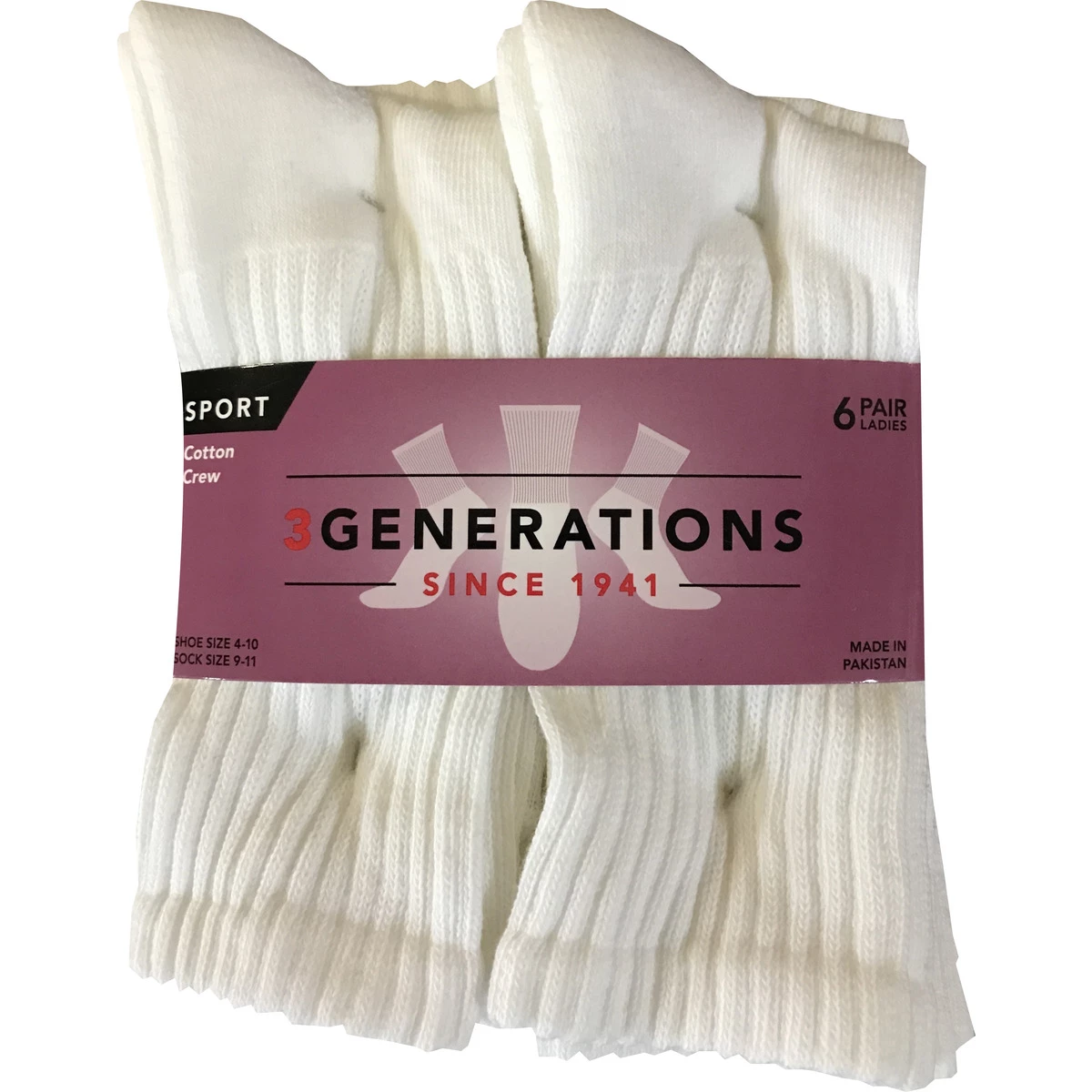 Crew socks w/ full cushion foot for high impact, smooth toe seam, Y heel to keep socks in place, spandex for the best fit.