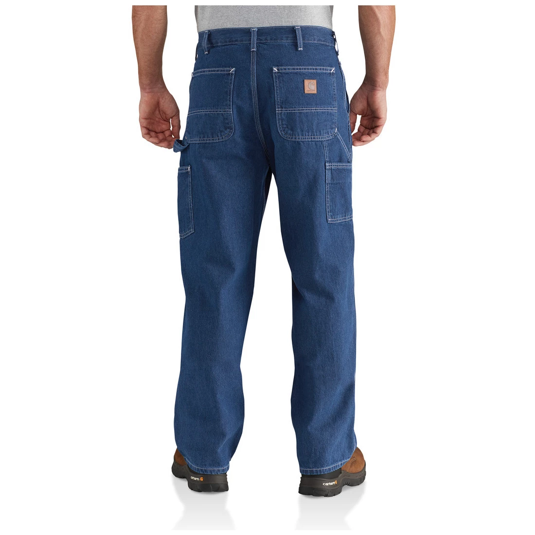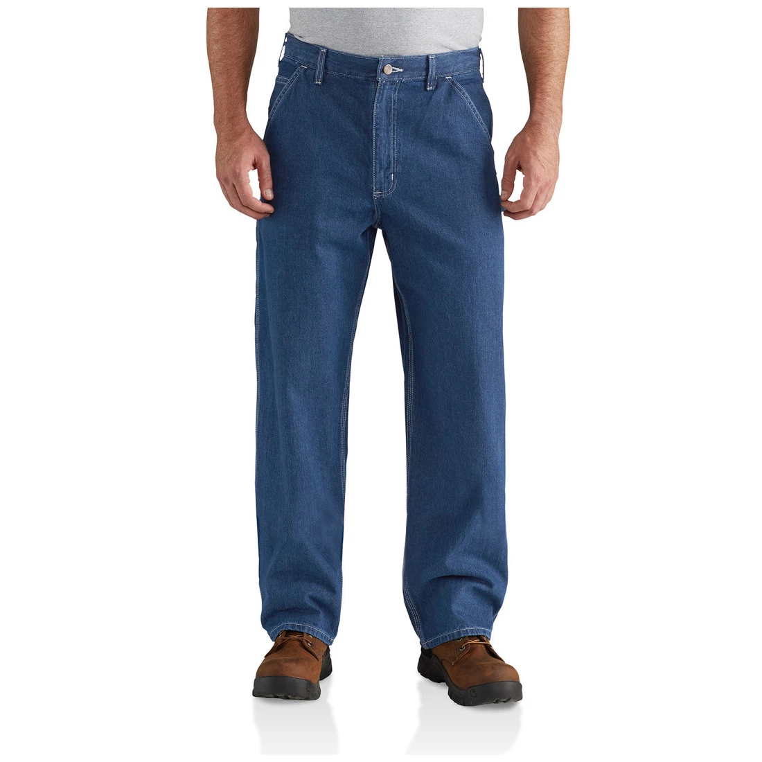 These men’s jeans are built in Carhartt’s roomiest cut with a full seat and thigh for easy movement and all-day comfort. Made of midweight denim, they feature plenty of pockets for your tools. 11.75-ounce, 100% cotton ringspun denim Loose Fit: Generous fit through the seat and thigh with the most room to move and a straight leg opening Strong sewn-on-seam belt loops Heavy-hauling reinforced back pockets Multiple tool and utility pockets with left-leg hammer loop Imported