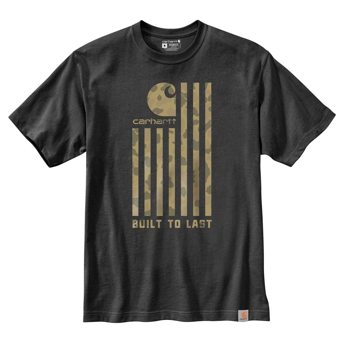 This men’s Carhartt t-shirt is made of a midweight cotton-blend knit for comfort at the jobsite or in your down time. Relaxed fit lets you move easily. Camo flag graphic stands out on the chest. #5.5-ounce, 50% cotton / 50% polyester jersey knit #Relaxed fit #Rib-knit crewneck holds its shape throughout the day #Side-seam construction minimizes twisting #Camo flag graphic on chest #Tagless neck label for a smooth feel #Made in the USA