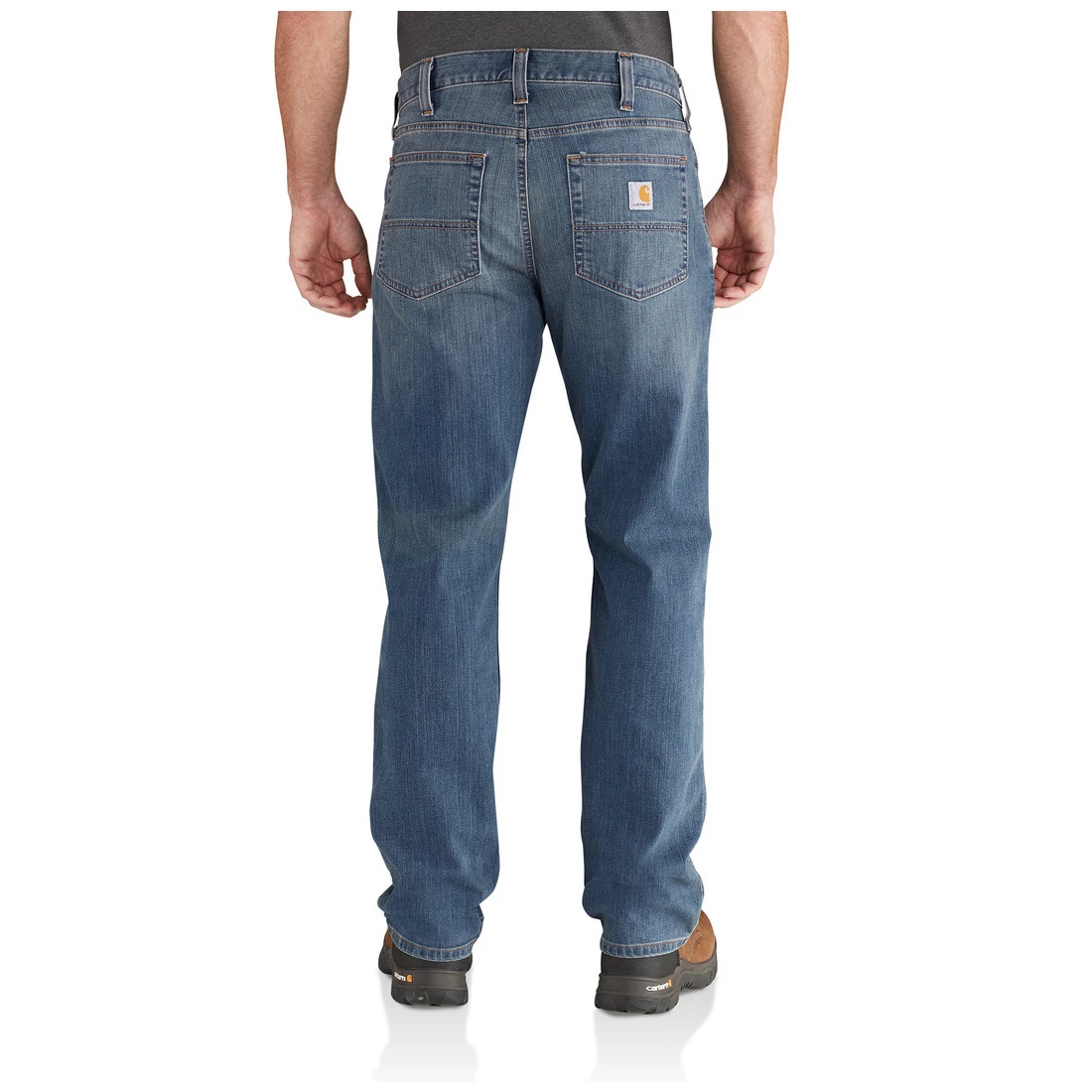 These men’s work jeans have all the durability you’d expect from a pair of Carhartt pants but with extra flexibility too. The heavyweight denim has some stretch giving you easy movement on the job. They’re cut with a straight leg and a relaxed fit with extra room in the seat and thigh. 12-ounce, 85% cotton / 14% polyester / 1% spandex denim Built to move with Rugged Flex stretch technology Relaxed Fit: Comfortable fit through the seat and thigh with more room to move and a straight leg opening Strong sewn-on-seam belt loops Front and back pockets Imported