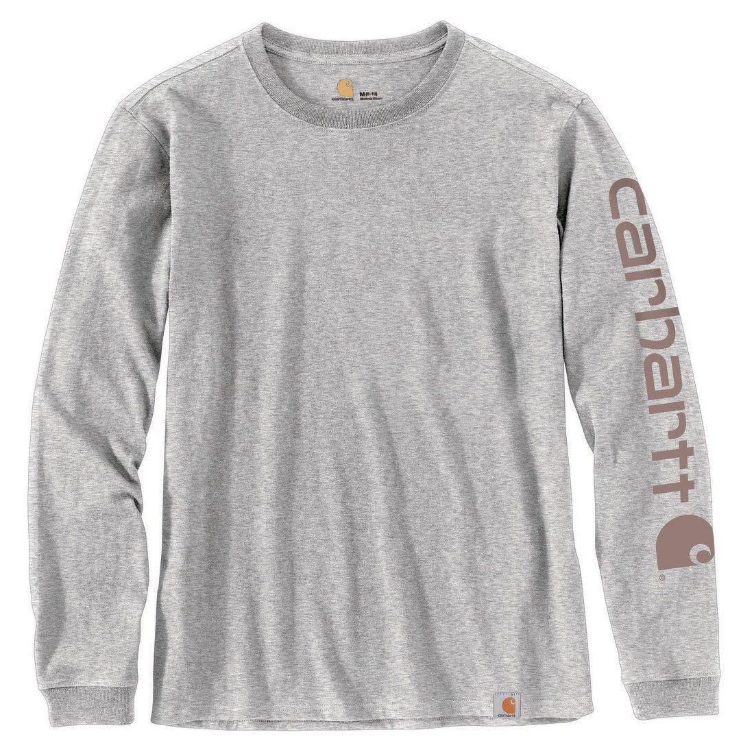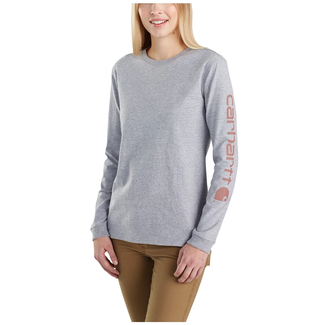 A solid hoodie you’ll always want around to throw on when the temperature drops. 10.5-ounce, 55% cotton/45% polyester Zip-front with attached three-piece hood Front handwarmer pockets Ribbed cuffs and waistband Replaces 102340 Imported *Seaglass Space Dye Fiber Content is 73% cotton/27% polyesterFor well over a century, the Carhartt name has stood for quality and dependability on the job. This women’s long-sleeve t-shirt is made of heavyweight cotton jersey and features a Carhartt logo on the sleeve.