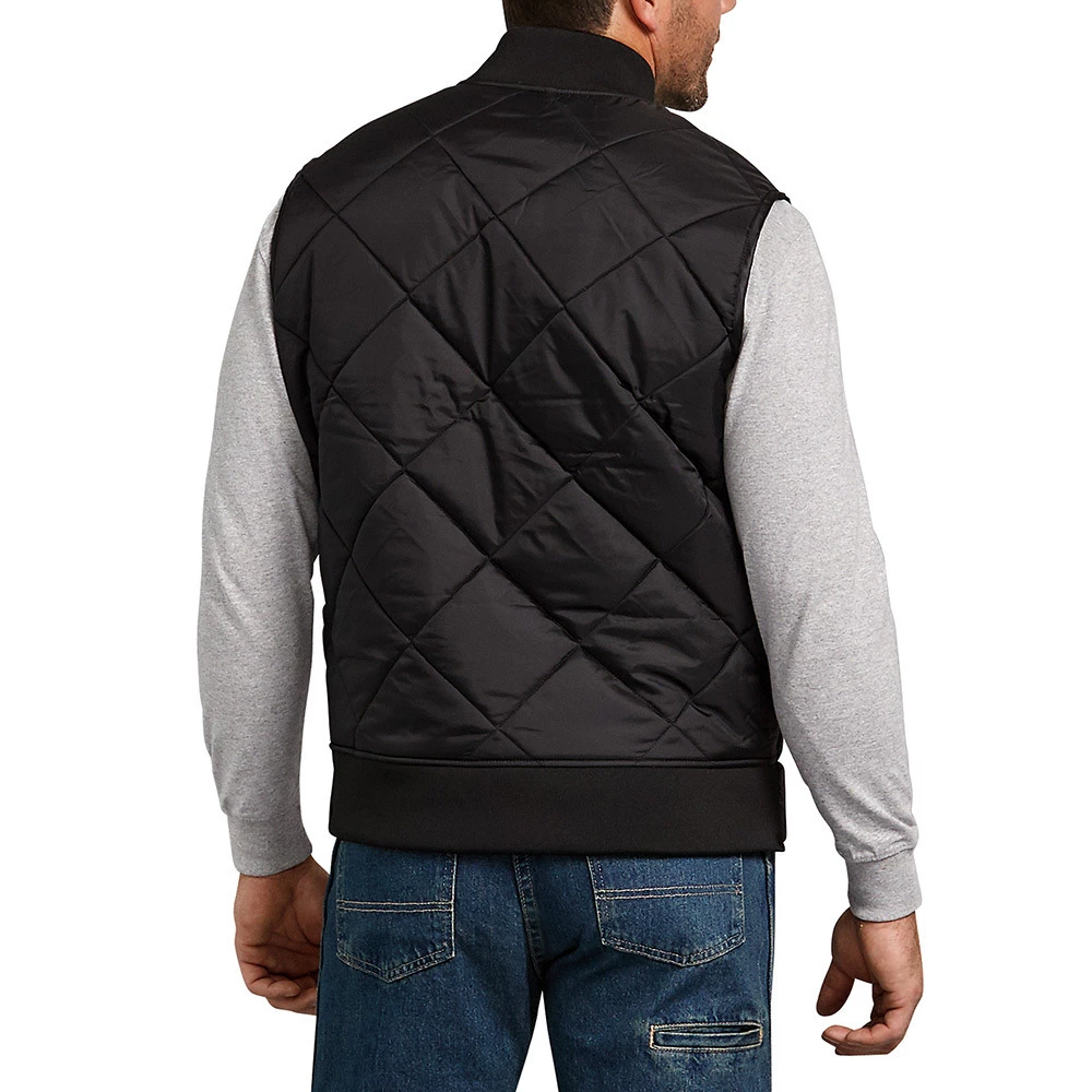 Warm and comfort are a given with Dickies’ Diamond Quilted Nylon Vest. The diamond quilt secures the 100% nylon taffeta shell to the gray jersey knit backing. It provides warmth and protection from the elements. The water resistant and repellent features keep you dry when it rains. This lightweight vest features hand warmer pockets for extra comfort on chilly days.