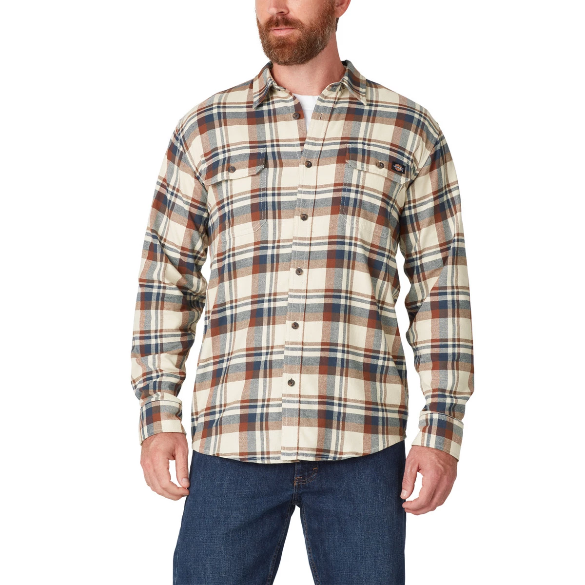 Take the flannel route in comfort with Dickies Long Sleeve Flex Flannel Shirt. The stretch material is made with Flex fabric so you can easily move in comfort. Faux-horn buttons give off a vintage feel, while the brushed fabric stays soft and wearable. The chest pockets have pencil division to keep you organized on the job.