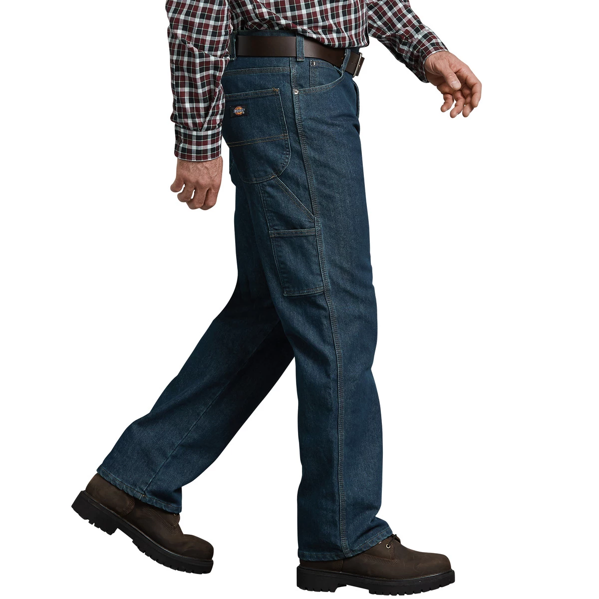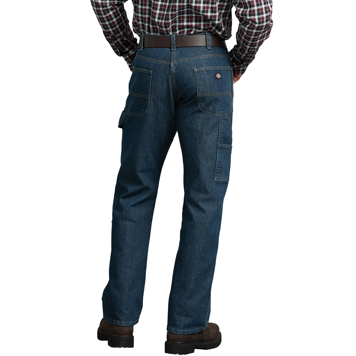 Dickies FLEX Relaxed Fit Straight Leg 5-Pocket Carpenter Tough Max Denim Jean with TOUGH MAX technology by LYCRA brand is two times as tough as those made of traditional all-cotton denim. The premium LYCRA brand flex fabric also provides maximum comfort and flexibility, plus abrasion resistance and longevity that tradesmen appreciate. The relaxed fit, straight leg pant has classic carpenter details including a hammer loop on left leg and a relaxed fit that provides more room through the seat and thigh.