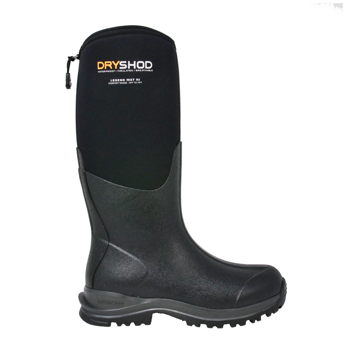 Lightweight, comfortable, versatile. The Legend MXT takes you from work to play and season to season! A perfect fitting women’s boot for all seasons. Comfort Range of -10 to 75 F. 100% waterproof top to bottom, feature a 5mm Densoprene^ Foam insulated bootie to keep out the cold & Wet and keep in the warm & dry, Hydrokote^ water repellent so water rolls off and dries in seconds. 4-way stretch breathable airmesh lining tomove the air and keep your feet dry and comfortable, roll-down calf pipe to tuck in your pant leg or vent in warm temperatures, only genuine hand-laid rubber (no PVC, PU or TPR), reinforced tuck board with rigid shanks for superior stability, slipper soft comfort and sized to athletic shoe standards, and convenient back-pull tabs for easy-on/easy-off convenience. In addition to these standard Dryshod features this boot features: MXT cupped outsol excellent stability on uneven terrain Steel shank for added arch support