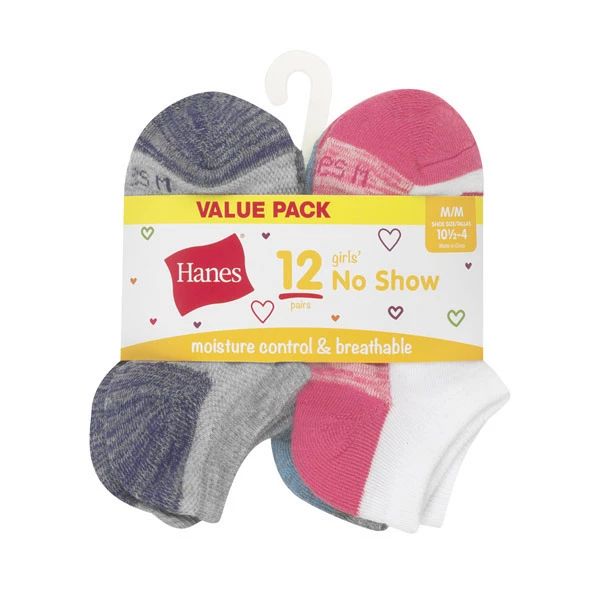 Hanes Girl’s Moisture Control & Breathable No Show Socks, 12-Pack