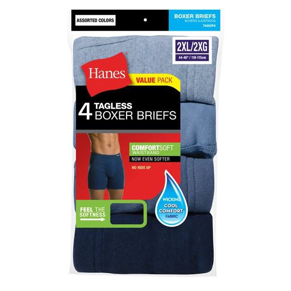 Hanes Men’s Tagless Boxer Briefs With Comfortsoft Waistband, 4-Pack
