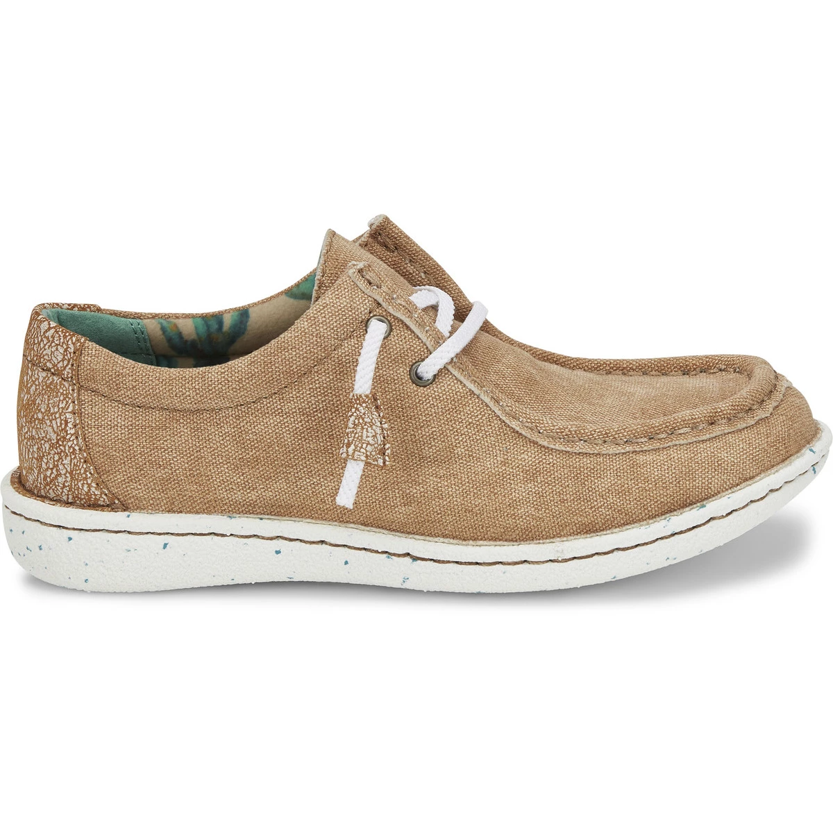 The women’s Hazer in Honey canvas from the Justin Casuals collection features laid-back moc-toe styling with a cushioned insole. A style so cool, we had to borrow it from the boys! The women’s Hazer in honey from the Justin Casuals collection features the comfortable moc-toe styling of our original men’s style, with the same contrast detailing and cushioned insole for a laid back, easygoing fit. The Justin Casuals collection features stylish, comfortable and lightweight footwear crafted with the Opanka technique, which returns energy to your foot, giving a trampoline effect with every step