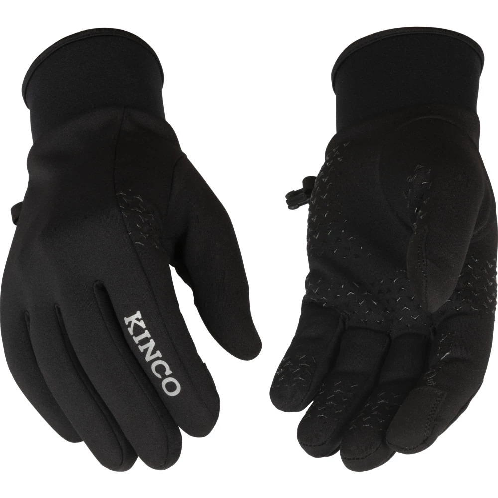 Black full lightweight four-way polyester softstretch brushed performance fleece wicks moisture, offers natural hand articulation & high-dexterity, & has exceptional breathability, Comfortable stretch-fit neoprene fabric cuff helps to retain warmth at pulse-point & seals in body heat, Pieced fabric hem incorporates an added piece of material, which creates a finished look, holds all layers of the glove together, & prevents fraying, slipNOT! silicone detail on palm & fingers provide better tactile sensitivity & enhanced grip control, Form-fitting fourchette finger design offers a snug fit, while allowing for the natural extension & contraction of finger movement, Inset wing thumb, designed with a separate piece of material to match the natural angle of the thumb, adapts to the movement of the hand to provide great dexterity & comfort, Touch-screen compatible thumb & index fingertips provides convenient access to devices while protecting hands, Reflective detail on index finger for low-visibility conditions, Pairing buckle keeps gloves together when not in use, Size(s): S, M, L, XL