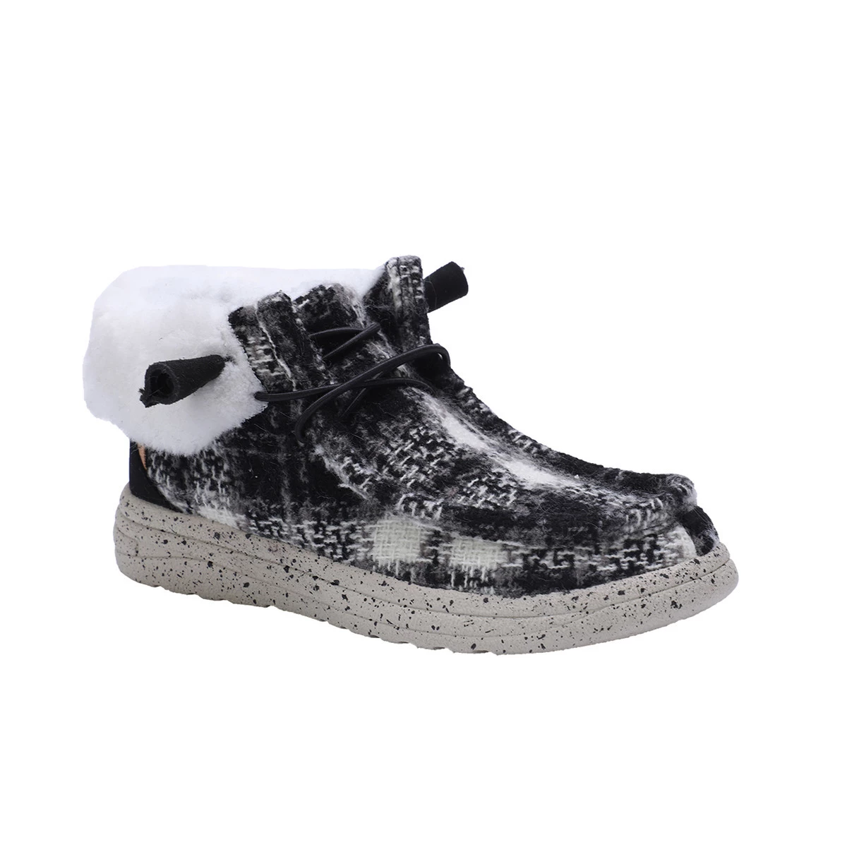 Experience cozy comfort with the Cassidy Kids’ shoe. The perfect balance of fun textile patterns and rich suede upper along with cozy faux fur footbed, this shoe will keep you comfy and stylish. You’ll be hard-pressed to find a more comfortable and durable shoe thanks to our LaMO-LITE EVA outsole. Don’t believe us? That’s why all of our footwear with LaMO-LITE outsoles have a 30-day comfort guarantee.