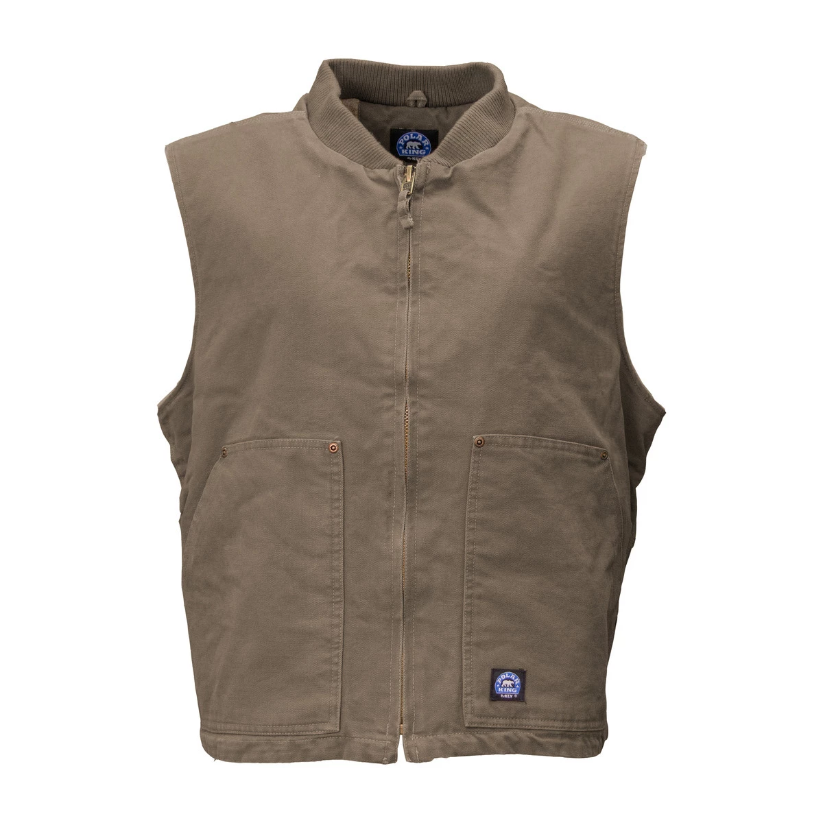 Get the job done in the Polar King Premium Berber Lined Vest. The heavyweight duck outer shell with kidney flap will keep the cold air out while the heavy-piled berber lining will keep the warmth in. The heavy duty front zipper, interior pockets and fleece lined hand warmer pockets ensure comfort and convenience. Rivets and triple needle stitching provide the durability needed for the toughest jobs.