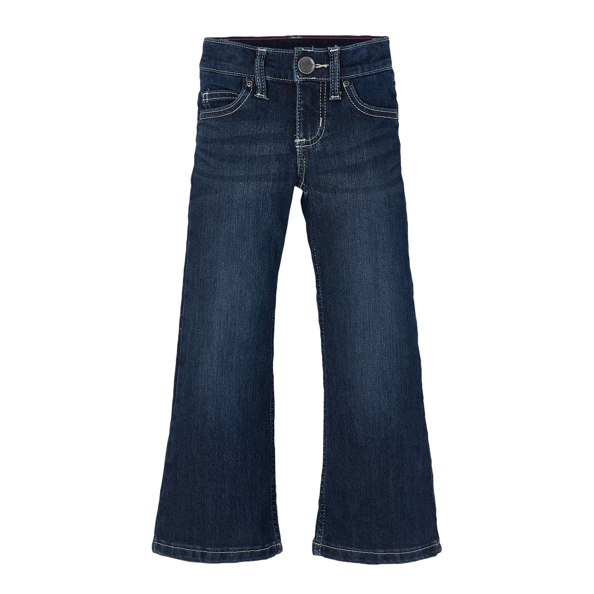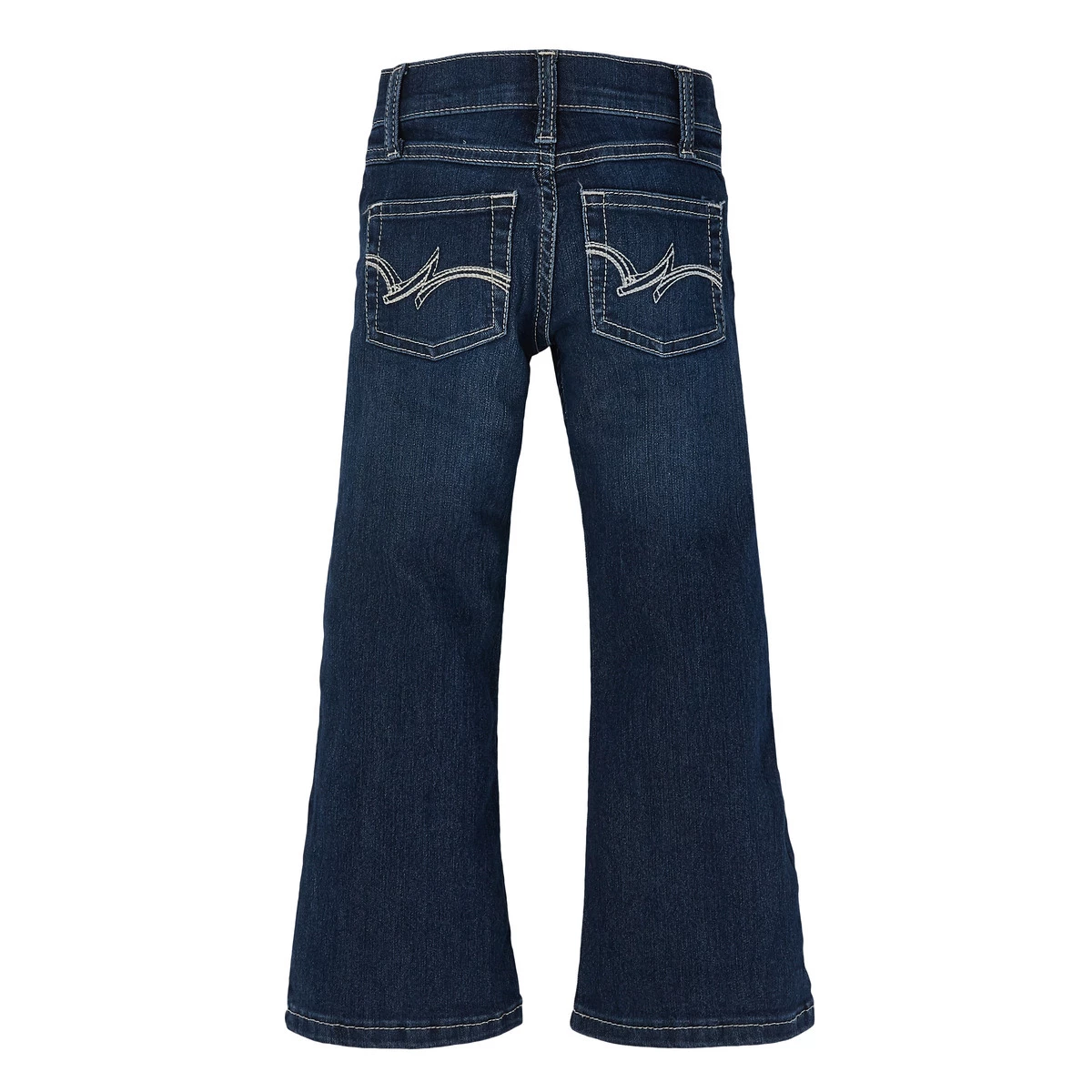 The Girl’s Wrangler Retro Bootcut Jean with Stretch are stylish and fashionable and designed with little girls in mind. These jeans sit at the waist, have a fitted seat and thigh and bootcut leg opening. They also have a leather Wrangler patch and embroidered “W’s” on the back pockets for extra flair. With our classic 5-pocket styling, she can dress just like big sister and Mom! The cotton blend construction paired with a hint of spandex give both the durability moms want in a quality pair of jeans, with the comfort and ease of movement she needs to run and play. Little girls’ sizes 4 through 6x also feature an adjust-to-fit waistband. As fast as children grow, the adjustable waistband is a welcome addition in that it will extend the life of these jeans and expand to fit as she grows. Ready to wear for any occasion, little cowgirls everywhere love Wranlger jeans.