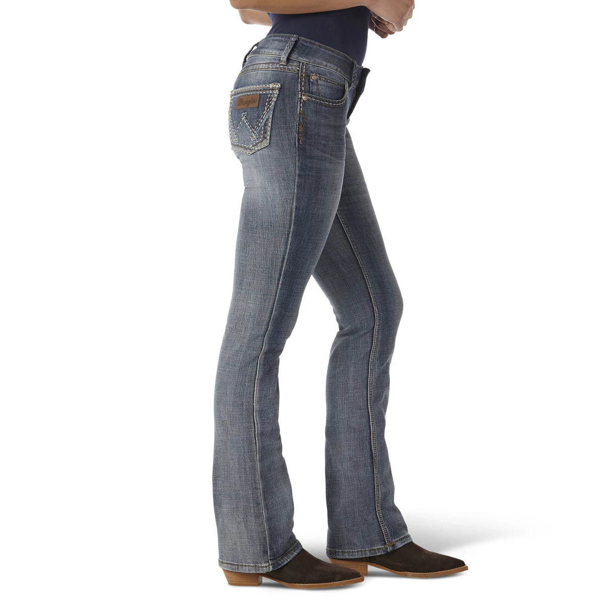 The Women’s Wrangler Retro Sadie Bootcut Jeans are the perfect pair for the modern cowgirl. Featuring a low-rise waist, fitted seat and thigh, and bootcut leg opening, these jeans are ideal for pairing with your favorite belt and boots. They have a leather Wrangler patch and iconic embroidered “W” stitching on the back pockets for a for an authentic Wrangler look. The cotton blend construction paired with a hint of spandex give both the durability a woman wants in a quality pair of jeans, with the comfort and ease of movement she needs to go about her busy day. A truly versatile style, these jeans are made for going out on the town with friends to dance the night away or just having a family game night at home. Dress them up with a Wrangler Retro Western Snap Shirt or dress them down with your favorite graphic tee