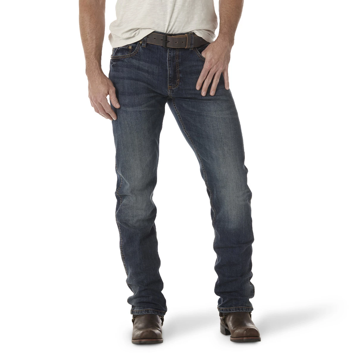 For classic Western style with a throwback twist, the Wrangler Retro Slim Fit Straight Leg Jeans are the answer. These jeans are easy to wear and comfortable enough for any occasion – whether it be a night on the dancefloor or a weekend at home. Your favorite plaid snap front shirt or graphic tee will add just the right touch to complete your look. These jeans sit lower on the waist and have a lean silhouette with a slim fit through the seat, thigh and knee. The straight leg openings still leave plenty of room for your favorite boots, letting you look good and feel good. Adding a modern edge to a traditional Western-inspired style, these jeans have a comfortable lower waistline and feature contemporary washes to give them authentic character. Maintaining the familiar legacy of Western wear by Wrangler, these jeans are adorned with the iconic Wrangler leather patch and “W” stitching on both rear pockets. Additionally, the classic 5-pocket styling, standard zip fly with button closure, rivet embellishments on the pockets and belt loops around the waist well let’s just say these jeans have it all.