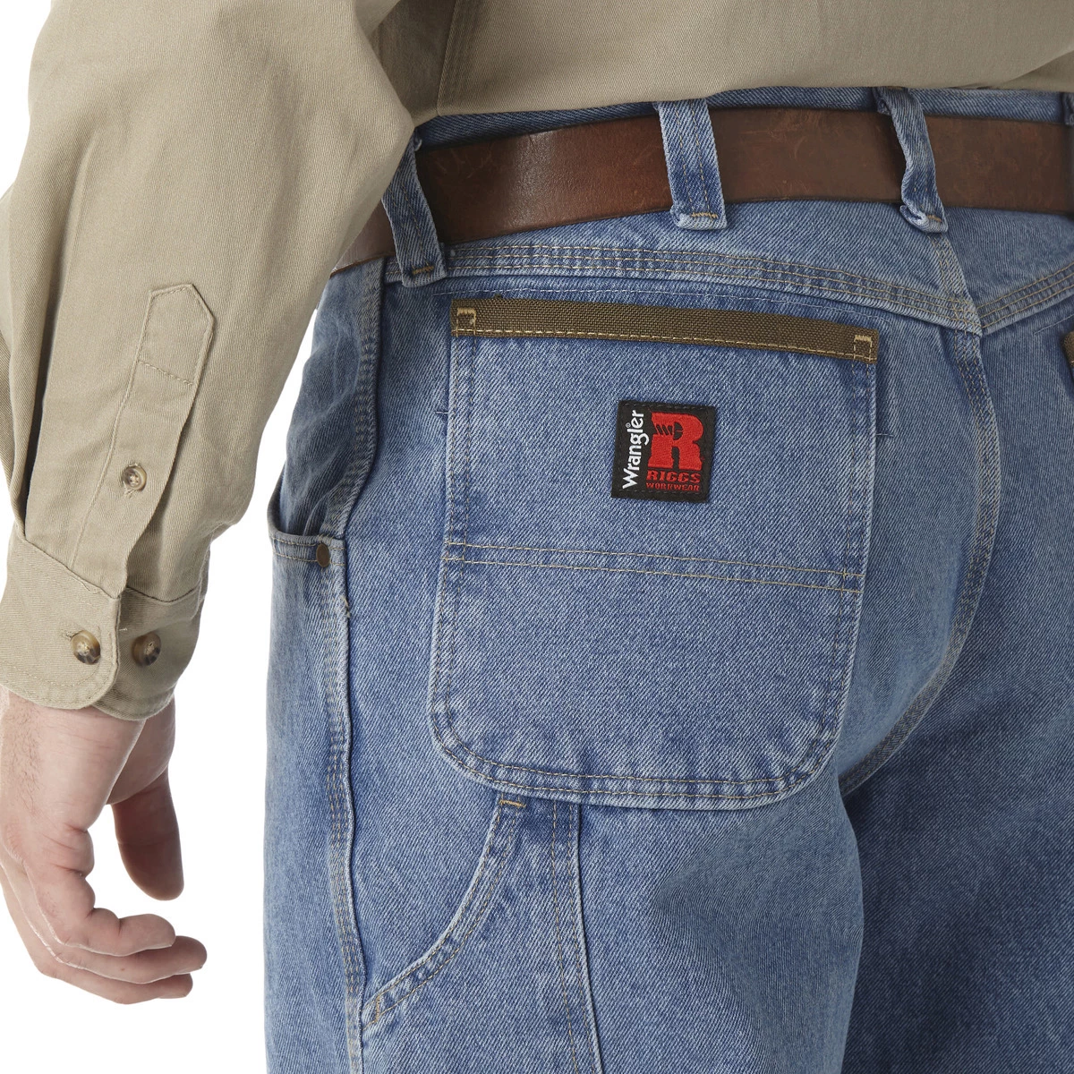 When you need a sturdy pair of jeans that can keep up with you on the job, Wrangler RIGGS WORKWEAR Carpenter Jeans are the solution. These jeans offer a relaxed fit through the seat, thigh and knee, and feature Wrangler’s exclusive Room2Move fit with a gusseted crotch construction allowing you to move more freely and keeping you comfortable no matter what tasks lie ahead. Sitting at the natural waist, theses jeans provide all-day comfort while you’re hard at work. The relaxed fit leg will still fit over your boots and the durable 100% cotton DuraShield denim will keep you cool without restricting your movement. Helpful design additions such as the 1000 Denier CORDURA lined back pockets, a patented reinforcement patch on the front pocket that works great for a tape measure or other tool, a dedicated tool pocket, hammer loop and more make these jeans a must-have on the job.